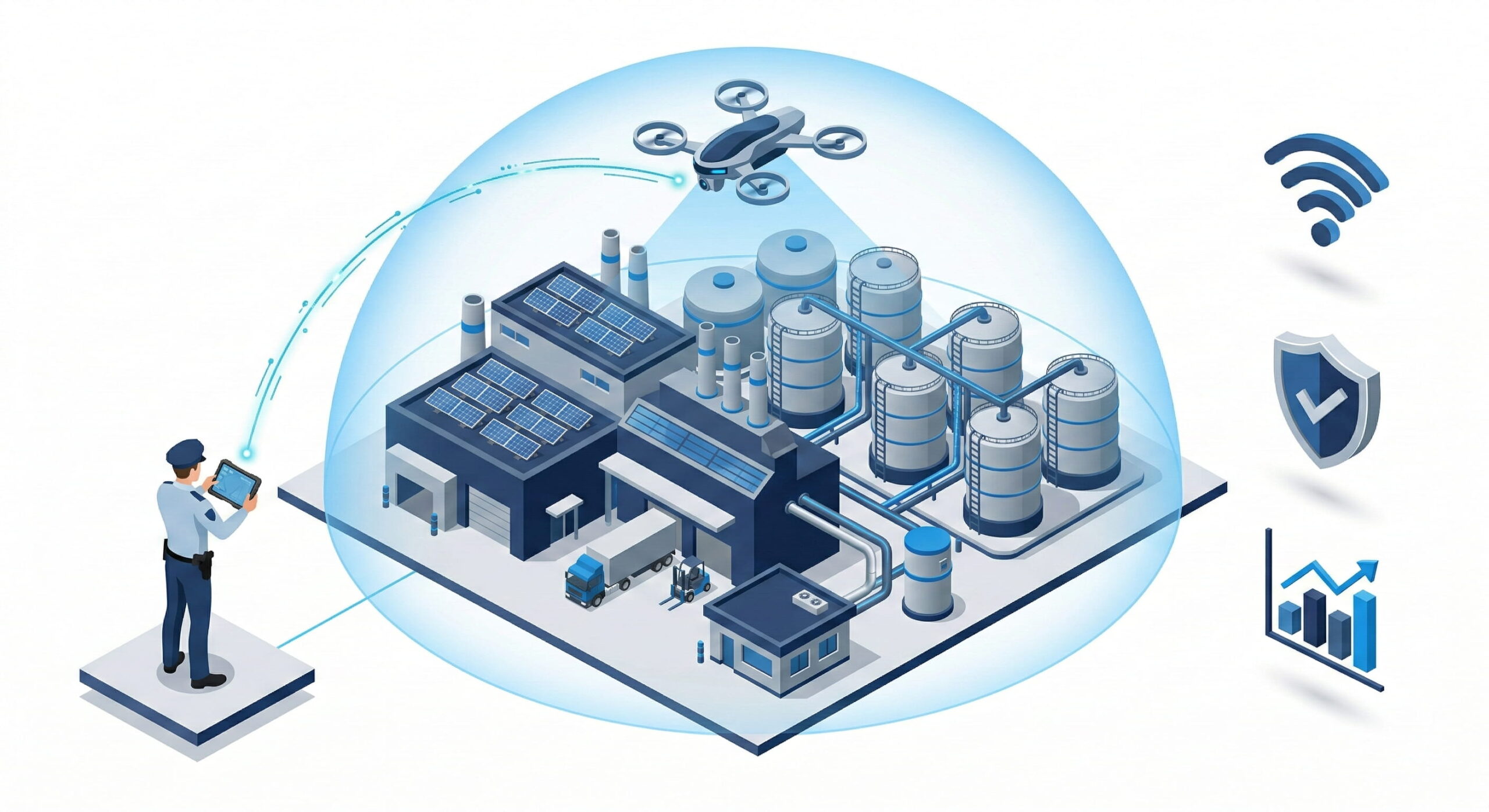 Protect your industrial sites with advanced drone security designed for large-scale operations. From manufacturing plants to warehouses and distribution centers, our intelligent aerial surveillance ensures full visibility, rapid response, and continuous protection across your entire facility.